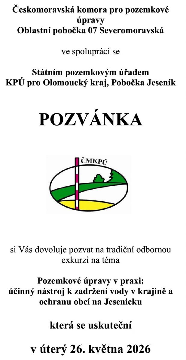 Praha, 17. března 2026 – Českomoravská komora pro pozemkové úpravy (ČMKPÚ) ve spolupráci se Státním pozemkovým úřadem (SPÚ) zahajuje 19. ročník soutěže Žít krajinou, která dlouhodobě představuje nejzdařilejší projekty realizované v rámci komplexních pozemkových úprav v celé České republice. Cílem soutěže je ocenit kvalitní práci projektantů, realizátorů, obcí a dalších aktérů, kteří přispívají k obnově a rozvoji české krajiny. Přihlášky mohou zájemci podávat do 30. dubna 2026.